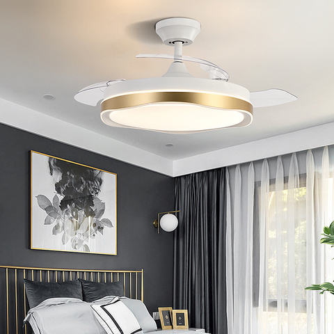 Fernbedienung Moderne versenkbare Klinge LED-Lüfter lampe Wohnzimmer Schlafzimmer Dekorative LED-Decken ventilator Licht