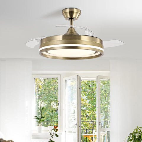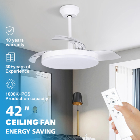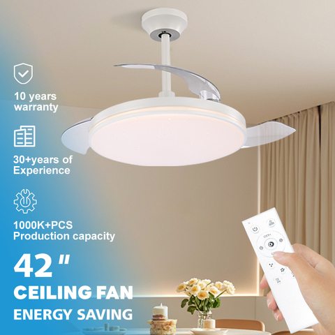 Modernes Wohnzimmer im Innenbereich 36 Zoll 42 Zoll Gleichstrom motor Einziehbare Klinge Fernbedienung LED-Decken ventilator mit Licht