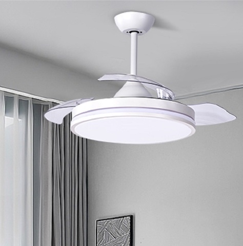 Hochwertige weiße Lampe Haushalt versenkbare moderne Stil Schlafzimmer LED Fernbedienung Decken ventilator mit Licht