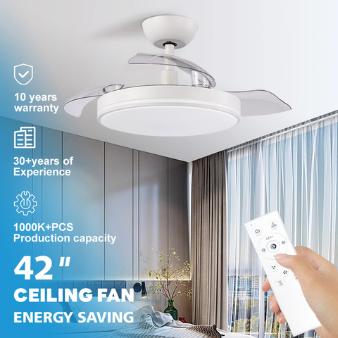 Großhandels preis 42 Zoll BLDC einziehbar unsichtbar 3 Abs Blade Smart Fernbedienung Innen Decken ventilator mit LED-Licht